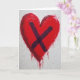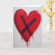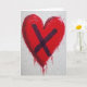 This Valentine’s Day card communicates strong emotion through striking imagery alone. At the center is a large red heart painted with bold, sweeping brush strokes that give it movement and intensity. A deep purple “X” cuts across the heart, creating a powerful symbol of rejection or heartbreak. Red paint appears to drip from the bottom of the heart, adding a sense of pain and sacrifice. Behind it, a calm gray patterned background with maze-like lines provides contrast, emphasizing the chaos of the heart against order. With no words on the card, the image speaks for itself, making this a meaningful choice for expressing complex feelings on Valentine’s Day.