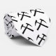 Black and white tie with repeating crossed rock hammer symbols.