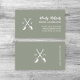White crossed spades with initials logo on garden designer or landscaper business card template with dusky green background. Create your own stunning business card and make a lasting impression. Bee Happy © y.BEE PAPERIE