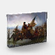The year was 1776, and the American Revolution was in a perilous state. General George Washington's Continental Army, outnumbered and outgunned by the British forces, faced a desperate situation. Morale was low, supplies were scarce, and the army was shrinking as soldiers' enlistments expired. - Washington knew he needed a bold move to turn the tide of the war. He devised a daring plan to cross the icy Delaware River on Christmas night and attack the Hessian mercenaries stationed in Trenton, New Jersey. The Hessians, known for their heavy drinking and partying, were likely to be off guard during the holiday season. - On December 25th, the Continental Army gathered on the Pennsylvania side of the river. The weather was bitterly cold, with snow and sleet falling. The river was partially frozen, making the crossing even more treacherous. Despite the harsh conditions, Washington's men, inspired by their commander's determination, prepared for the perilous journey. - Under the cover of darkness, the army embarked on small boats and rowed across the icy river. The crossing was arduous, with some boats getting stuck in the ice and soldiers falling into the freezing water. But the Continental Army persevered, driven by the hope of victory. - Upon reaching the New Jersey shore, the troops marched towards Trenton. The surprise attack caught the Hessians off guard, and the Continental Army quickly overwhelmed them. The battle was swift and decisive, with the Americans capturing over 900 Hessian soldiers and seizing valuable supplies. - The victory at Trenton was a turning point in the American Revolution. It boosted the morale of the Continental Army and the American people, and it showed the world that the American rebels were a force to be reckoned with. General George Washington's daring crossing of the Delaware River became a symbol of courage, determination, and the indomitable spirit of the American Revolution. - This work by Emanuel Leutze (1816–1868) is in the public domain in its country of origin and other countries and areas where the copyright term is the author's life plus 100 years or fewer.