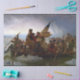 The year was 1776, and the American Revolution was in a perilous state. General George Washington's Continental Army, outnumbered and outgunned by the British forces, faced a desperate situation. Morale was low, supplies were scarce, and the army was shrinking as soldiers' enlistments expired. - Washington knew he needed a bold move to turn the tide of the war. He devised a daring plan to cross the icy Delaware River on Christmas night and attack the Hessian mercenaries stationed in Trenton, New Jersey. The Hessians, known for their heavy drinking and partying, were likely to be off guard during the holiday season. - On December 25th, the Continental Army gathered on the Pennsylvania side of the river. The weather was bitterly cold, with snow and sleet falling. The river was partially frozen, making the crossing even more treacherous. Despite the harsh conditions, Washington's men, inspired by their commander's determination, prepared for the perilous journey. - Under the cover of darkness, the army embarked on small boats and rowed across the icy river. The crossing was arduous, with some boats getting stuck in the ice and soldiers falling into the freezing water. But the Continental Army persevered, driven by the hope of victory. - Upon reaching the New Jersey shore, the troops marched towards Trenton. The surprise attack caught the Hessians off guard, and the Continental Army quickly overwhelmed them. The battle was swift and decisive, with the Americans capturing over 900 Hessian soldiers and seizing valuable supplies. - The victory at Trenton was a turning point in the American Revolution. It boosted the morale of the Continental Army and the American people, and it showed the world that the American rebels were a force to be reckoned with. General George Washington's daring crossing of the Delaware River became a symbol of courage, determination, and the indomitable spirit of the American Revolution. - This work by Emanuel Leutze (1816–1868) is in the public domain in its country of origin and other countries and areas where the copyright term is the author's life plus 100 years or fewer.