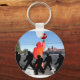 A crossing guard, holding a stop sign, with little children crossing in front of him. A reminder of a school zone or that school is back in session. A nice gift for your favourite crossing guard, who keeps your children safe on their walk to school. Key chains are available in round or square.