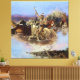 Charles (CM) Russell, the “cowboy artist”, created more than 2,000 paintings of cowboys, Indians, and landscapes set in the Western United States. He lived and worked among the cowboys and the Blood Indian tribe in his younger years. This painting is “Crossing the River”.