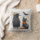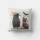 Crow and cat Halloween Autumn Crow Throw Pillow