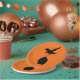 Fun plates with the silhouettes of a crow dive bombing a cupcake. Fun for a Halloween baby shower or the goth mom-to-be.