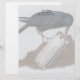 A colour pencil drawing of a curious crow investigating a shiny harmonica adorns this customizable stationary!