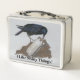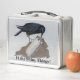 A colour pencil drawing of a curious crow investigating a shiny harmonica he has found adorns this lunch box! Customize by changing the text to suit yourself!