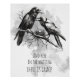 Black and white smooth ink art of a pair of crows, with their nest containing an egg. A watercolor wash background, you can add any background colour you like, we left this white. With the customizable text, “and here in the waiting there is grace ”. © original artwork by WhimsicalArtwork