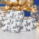 A crow wearing a red and white Santa cap on pine branches on this elegant winter wrapping paper.