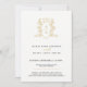 Crown and foilage wedding black gold on white invitation