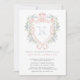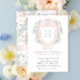Invite loved ones to celebrate the upcoming arrival with our Crown Crest Monogram Pink Blue Baby Shower Invitation. This stunning invitation features a soft watercolor design, embodying a modern yet vintage aesthetic. At its heart, a beautifully hand-drawn crest is adorned with a crown, delicate bows, and is festooned with lush greenery and flowers, creating an air of timeless elegance. The monogram is hand painted for each letter, and can easily be changed (see video).