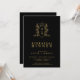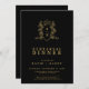 Gold hand-drawn heart crown crest with entwined leaves and berries wedding rehearsal invitation on a black background. In classic black and gold. Other colours and matching items are available. © Original hand drawing and design by Sarah Trett for www.mylittleedenweddings.com on Zazzle.