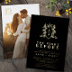 Gold hand-drawn heart crown crest with entwined leaves and berries wedding rehearsal dinner the night before invitation on a black background. In classic black and gold foil. Other colours and matching items are available and other foil options of silver and rose gold can be used with this design. © Original hand drawing and design by Sarah Trett for www.mylittleedenweddings.com on Zazzle.