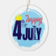 Crowned 4th Of July round ornament features a yellow crown on the figure 4, all against a light blue background. Perfect touch for fellow Americans to celebrate a happy 4th of July for United States's Independence Day. © Morning 6