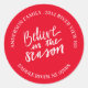Croyez en l'autocollant étiquette de adresse rond de Noël de saison mis sur un arrière - plan rouge festif.