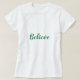 T-shirt blanc pour femmes avec citation vert foncé. Le texte dit "Crois".