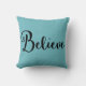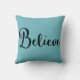 "Croyez" le texte dans le noir sur le coussin bleu