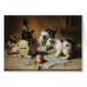 L'illustration vintage par Karl Reichert dépeint une scène humoristique où trois chatons qui sont montée sur un dessus de table jouent avec les jouets d'un enfant laissés là. Un livre, une boule et des dominos ont été moulés de côté pendant que les chats tournent leur attention à un Jack in the Box. Quand une sorcière effrayante saute hors de Jack in the Box soudainement, les chatons réagissent dans l'effroi en arquant leurs dos et queues et le sifflement. Un chaton était ainsi effrayé qu'il a dégringolé plus de sur son dos derrière Jack in the Box. L'artiste autrichien, Karl Reichert (1836-1918) était le fils du peintre autrichien de portrait et d'animal, Heinrich Reichert. Karl, né à Vienne, a suivi dans les pas de son père en tant que peintre des animaux et des scènes de ville, mais il était le plus célèbre pour ses peintures des animaux, particulièrement des chiens et des chats. Cette carte est intérieur vide pour votre propre message.