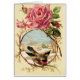 Une illustration vintage comportant un cadre rond des brindilles a complété par un grand rose et des boutons de rose de rose. À l'intérieur du cadre est une scène d'hiver. Un oiseau avec des ailes a prolongé des perches sur le fond du cadre de brindille. Cette carte est intérieur vide pour votre propre message.