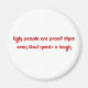 This hilarious magnet reads Ugly people are proof that even God needs a laugh in red lettering. If you need a laugh, buy this ugly people magnet and keep it close. This rude magnet would be a great gag gift idea, too. Change the ugly people magnet size or shape if you want. Change the background colour from white to a wide variety of colour choices. Or add your own message or a name.