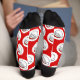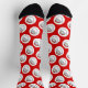 These socks feature a cute line drawing doodle art Christmas Santa with a red hat within a white circle on a red background. Featuring original art from Dogwood & Thistle.