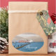 Oval sticker featuring a cruise ship by the pier at Penang, Malaysia. The cruise ship is on blue waters with overcast dark skies.