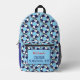 Fun cruise survival kit backpack patterned with blue and white ship lifebelts. All text is customisable so you can change the message and name
