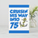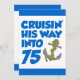 Crusing His Way Into 75 cool birthday invite featuring a cartoon anchor. Celebrate someone turning seventy-five with this cool, boat themed invitation. Great for someone who is about to take a cruise or that loves boats.