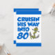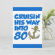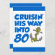 Cruising His Way Into 80 cool birthday invite featuring a cartoon anchor. Celebrate someone turning eighty with this cool, boat themed invitation. Great for someone who is about to take a cruise or that loves boats.