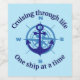 Nautical design in blue, that reads "Cruising through life one ship at a time".