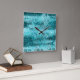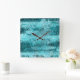 Crumpled blue neon paper square wall clock