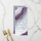 Une combinaison attrayante d'aubergine profonde, d'améthyste, d'agate marbrée bleu et blanc doux, texturée avec des faux cristaux et surlignée en or brillant crée l'arrière - plan pour les pièces de cette collection coordonnée. Une police serif propre et moderne et des taches d'or aspergées complètent ce style design saisissant. Cet élégant menu de réception de mariage comprend tout ce qui précède avec un arrière - plan doux et aquarelle, une texture améthyste chatoyante sur le dos et un modèle pour ajouter facilement vos sélections de menu. Affichez le lien de collection sur cette page pour voir tous les éléments correspondants dans cette belle conception ou recherchez ID825 pour voir des choix de couleurs supplémentaires pour cet ensemble.