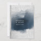 An elegant, modern wedding invitation featuring a sparkling crystal background with a smoky navy blue watercolor injection and a silver lefthand side border trim. A modern format for your names and date on the front only with your details on the back.