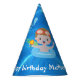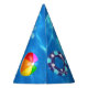 Crystal Clear Happy Birthday Pool Party Hat. Keep your pool party theme on track by adding these customized party hats. These will help make you party theme cohesive and continue the fun celebration party. Features the crystal clear blue water background with water splashing, a boy with a water gun and a beach ball and floating tube.