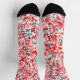 These socks feature a vibrant, abstract design characterized by a playful mix of red, white, and teal hues. The pattern consists of small, irregular shapes that create a lively and dynamic visual effect, reminiscent of confetti or splashes of paint. This eye-catching design is perfect for adding a pop of colour to any outfit, making these socks an ideal choice for those who want to express their unique style while keeping comfortable. Whether worn casually or as a statement piece, these socks are sure to stand out and brighten up your day!