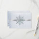 Lovely Winter wedding RSVP response card, done in a snowy silvery background. Beautiful crystallized silver tone and light teal snowflakes decorate the front and back of the card. Personalize all the text for your special day. Matching products available.