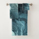 Crystalized Teal Agate | Dark Aqua Marbled Stone Bath Towel Set