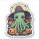 Cthulhu is trick or treating this fall, and now he is dressed as an adorable witch. This design will drive you mad with its gaze, you better give him Halloween candy! equipped with pumpkin pails, and other Kawaii imagery