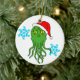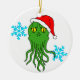 Cthulhu with a Santa hat and couple little Elder Sign snowflakes in the background.