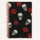 Looking for a unique and stylish notebook? This grid notebook features a striking skull and red rose pattern on a black background. The intricate design showcases small, non-overlapping skulls and vibrant red roses, complemented by subtle background details that add depth and visual interest. Perfect for journaling, note-taking, sketching, and all your creative endeavors. The quad ruled paper inside provides structure for math, science, design, and everyday writing. Stand out with this eye-catching and distinctive patterned notebook.