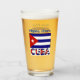 Design on drinking or beer glass shows the Cuban Flag and the word CUBA below the flag and it matches! Uses dark blue stripes. Above, a spot for your name so you can create a personalized look or gift. Fun for family reunions, travel groups, and clubs. Cool housewarming gift.