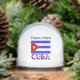 Personalized snow globe features the Cuban flag in light blue stripes. Below is the word CUBA, in the colours of the flag. Above is a place for a name in blue letters. Cool stocking stuffer or holiday gift.