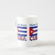 Personalized bone china mug shows the Cuban Flag and the word CUBA below the flag and it matches! Uses dark blue stripes. Above, a spot for your name, on blue letters, so you can create a personalized look or housewarming gift. Design shows on three sides of mug.