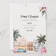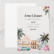 Cuban Landscape Invitation with cuban car, buildings and palm trees.