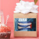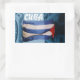 Cuban flag between buildings on blue background in Havana, Cuba sticker.