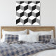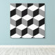 Optical illusion of shapes creating the pattern of cubes in black, white and grey.