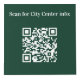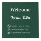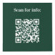 Pour les chambres d'hôtel, tables de restaurant, propriétés de location. Personnalisez et ajoutez le logo de votre entreprise, ainsi que de l'espace pour 4 codes QR. Arrière - plan vert foncé. Texte blanc.