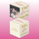 Golden mariage anniversaire photo cube idée cadeau. Personnalisez ce bloc de bois avec des noms, année établie, une photo et un message. Célébrer ensemble une véritable histoire d'amour pour les 50 ans du couple. Plan de couleur crème, or et rose avec un parfum de coeur d'amour