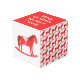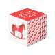 Ce magnifique cube photo de Noël est orné d'une image art numérique d'un mignon cheval à bascule de style scandinave. Le cheval est rouge avec une crinière rouge foncé, la queue et les sabots. Le cheval sympathique sourit. Il a une selle blanche et des rois avec de jolis motifs de style Scandi rouge sur la selle, y compris le soleil, la lune et les étoiles, les coeurs et les fleurs. La base du cheval rocking est rouge et est couverte de feuilles blancs. Le design a été inspiré par le cheval suédois Dala. Il y a du texte personnalisé pour que vous puissiez personnaliser ce design avec votre nom de famille et un message.