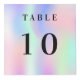 Pour le restaurant, le café, les tables de bar, Personnalisez et ajoutez votre logo d'entreprise, les numéros de table et le code QR pour votre menu. Un arrière - plan holographique, rose, violet et vert menthe, texte noir.